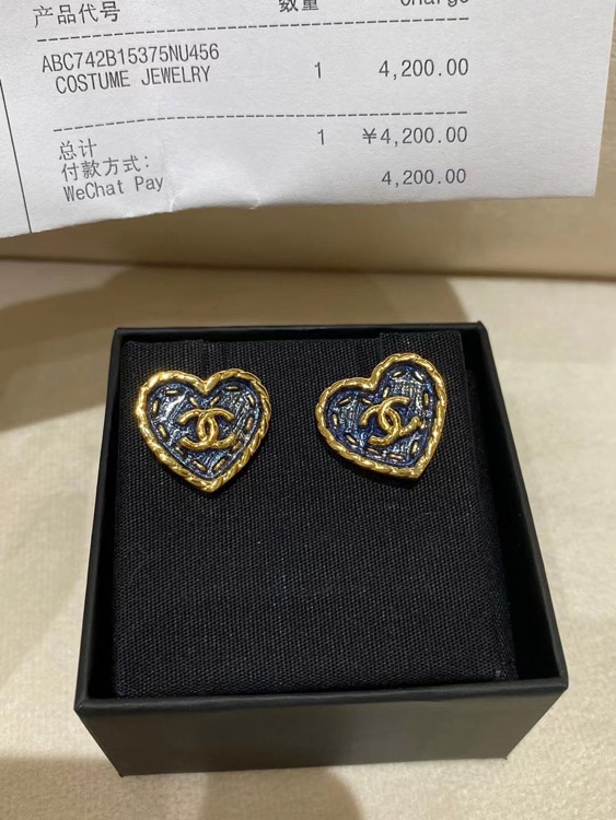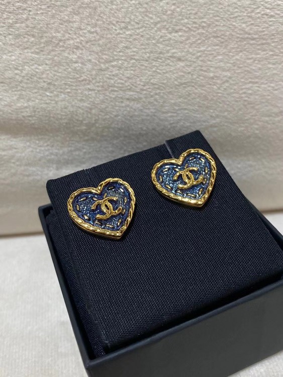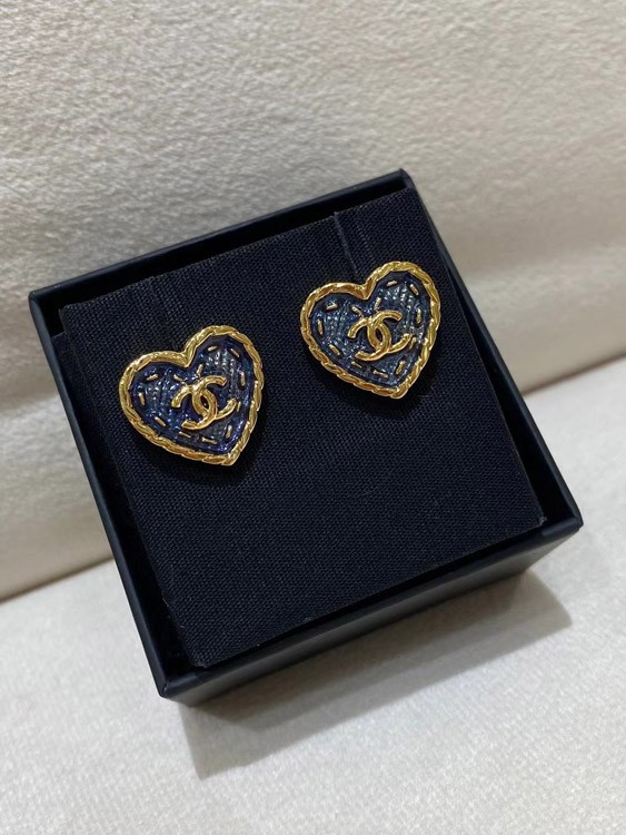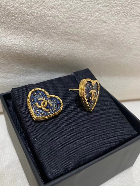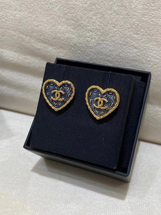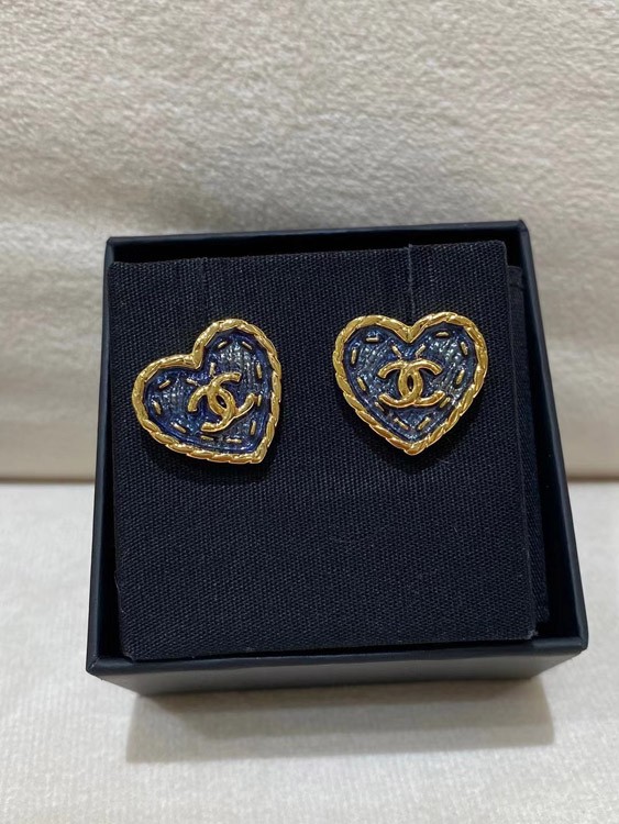 Chanel earrings small black gold denim love double c earrings-3579