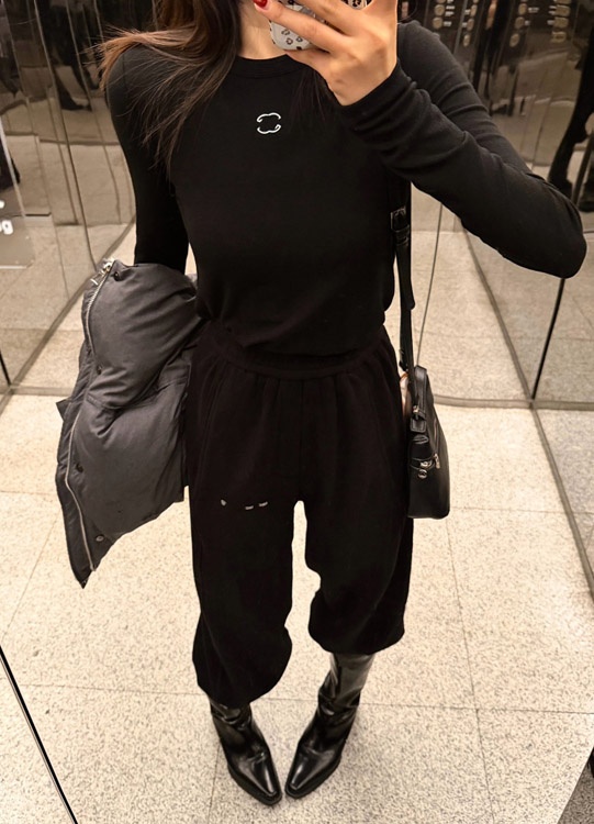 Chanel new arrival: crew neck top with contrasting letter print on the front and back-5369