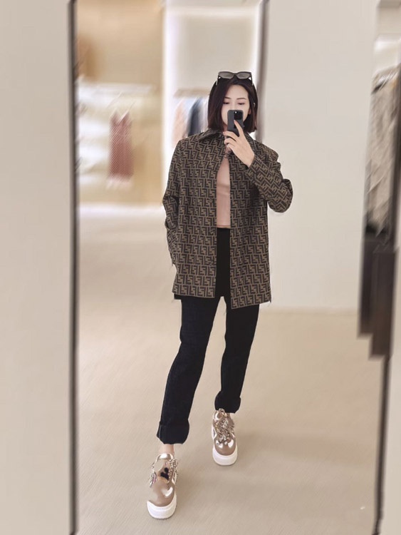 Fendi new jacquard letter collar patchwork fitted jacket-5362