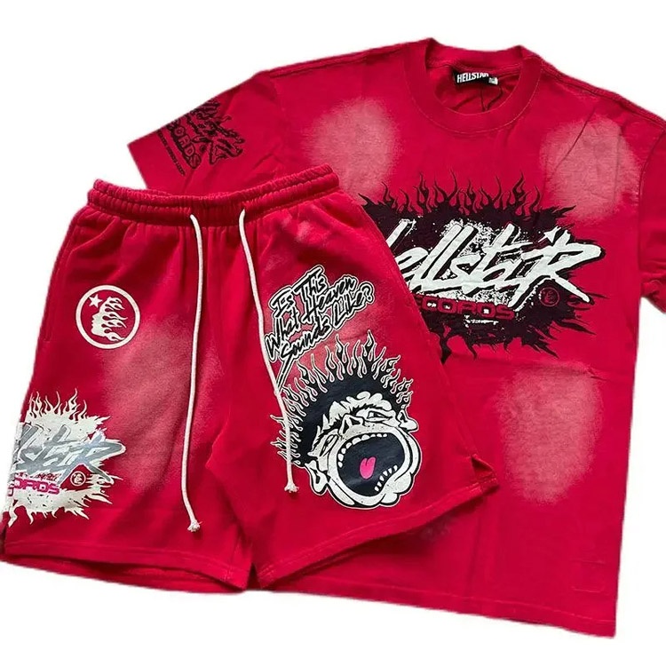 Home > Hellstar printed loose short-sleeved shirt and shorts set-5185