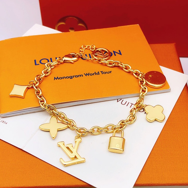 Louis Vuitton LV Letter Flower Lock Stone Color Drop Oil Bracelet-3874