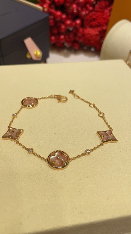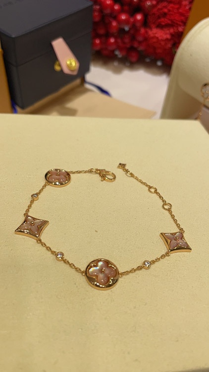 Home > Louis Vuitton LV Pink Mother-of-Pearl Floral Four-Leaf Clover Rose Gold Bracelet-3728