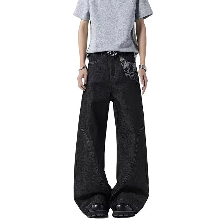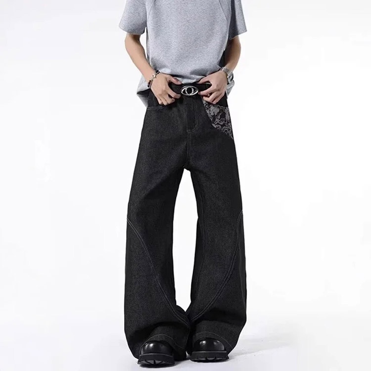 Home > Onenin's new raw color jacquard wide-leg jeans-4904
