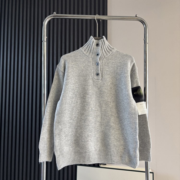 Home > Stone Island solid color button-up stand-collar knitted cardigan-5234