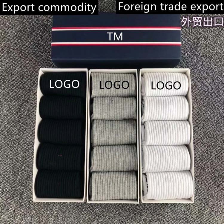 Tommy men's socks Tommy boxed four-season business casual mid-calf socks black and white gray gift box-2427