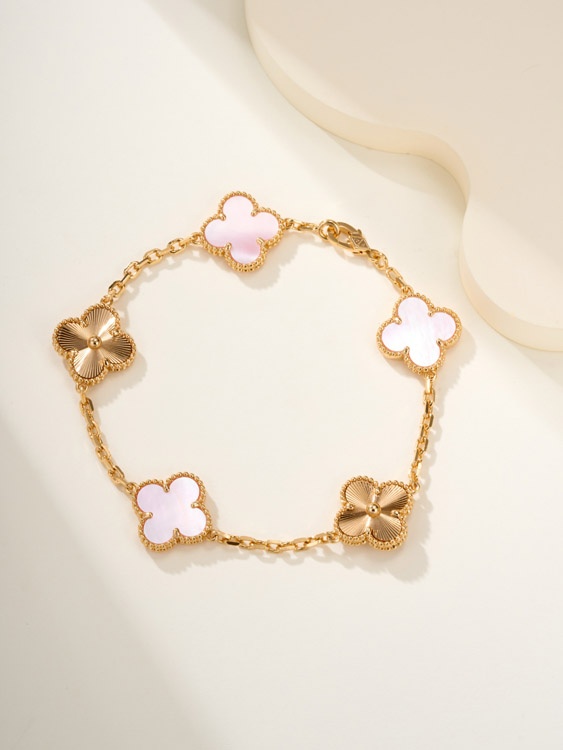 Van Cleef & Arpels Pink Mother-of-Pearl Flower Bracelet-3565